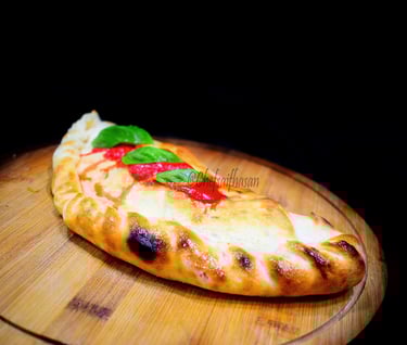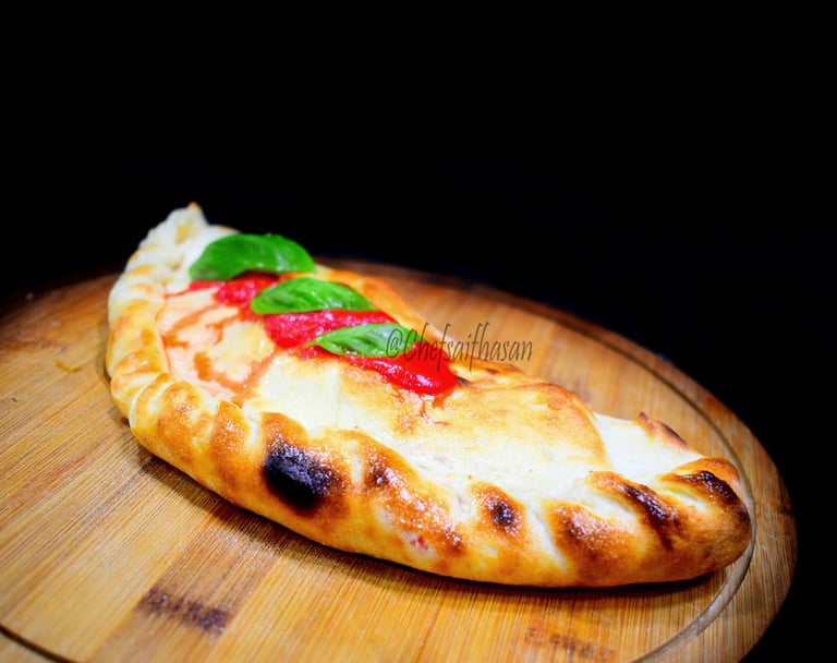 A calzone is an Italian oven-baked turnover, made with leavened dough. It originated in Naples