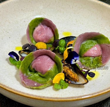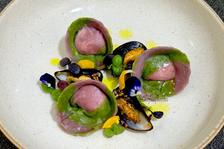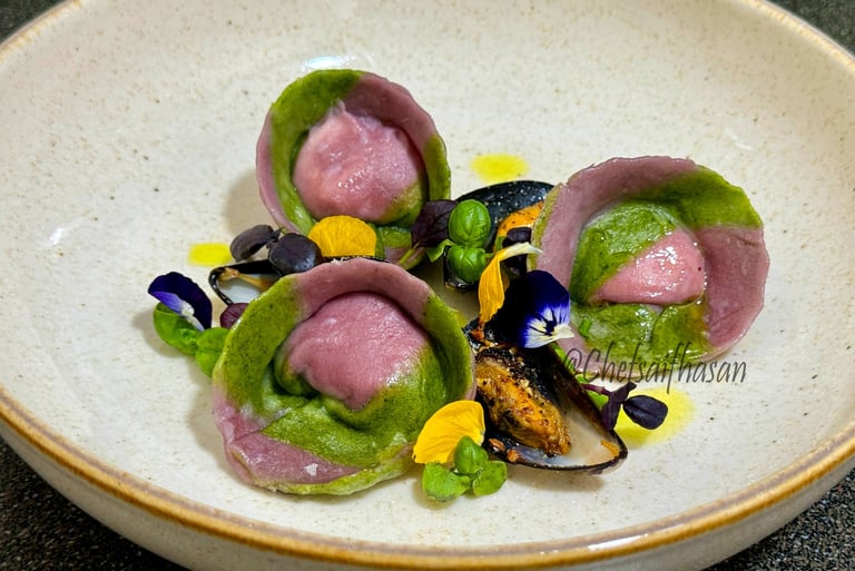 Cappelletti are ring-shaped Italian stuffed with Mussel and ricotta cheese pasta so called for the characteristic shape that resembles a hat. Compared to tortellini,