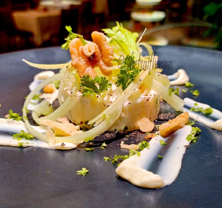 A Waldorf salad is a fruit and nut salad generally made of celery, fresh apples, walnut
